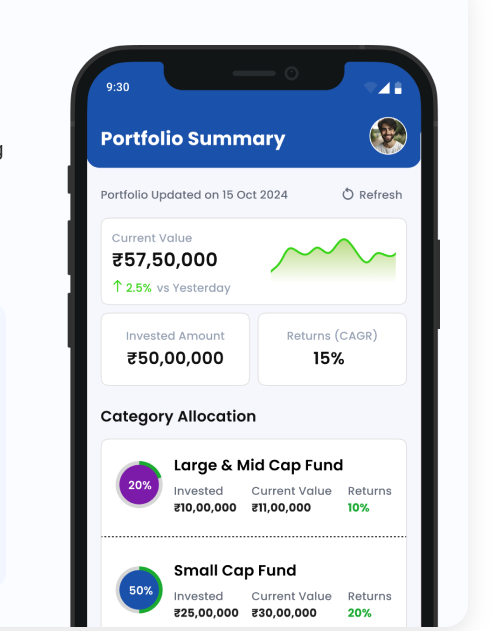 A perfectly diversified portfolio managed by professionals. Choose from Equity, Debt, Hybrid, and Tax-saving (ELSS) funds tailored to your financial goals and risk profile.